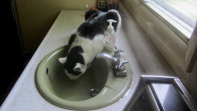 Here is a photo of Daisy drinking from the sink in the entryway.
